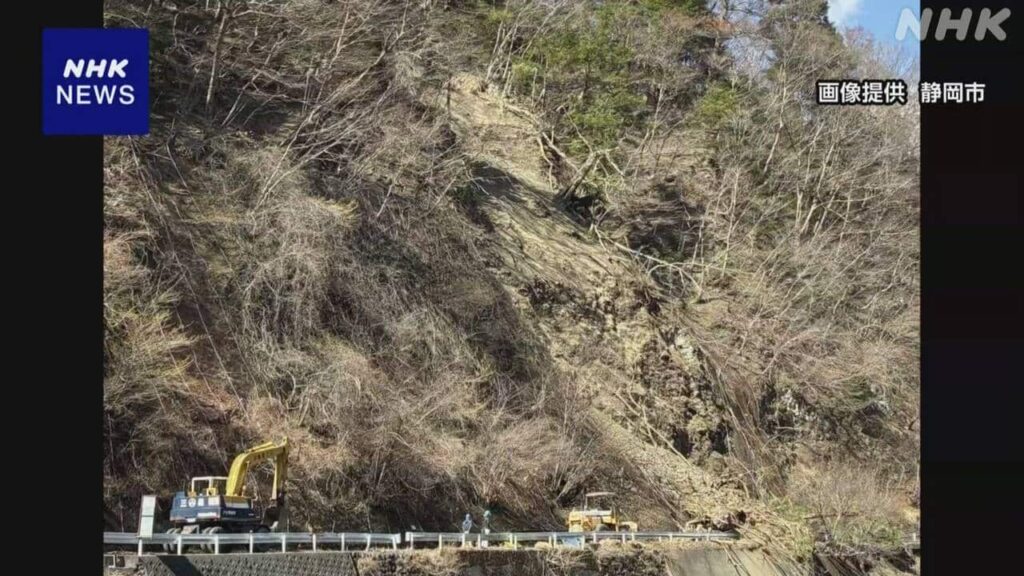 静岡 山間部で県道脇の斜面崩れ 少なくとも79人が下山できず