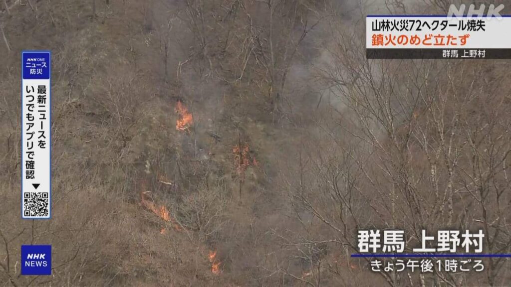 群馬 上野村 山林火災 鎮火めど立たず 23日もヘリで消火活動へ
