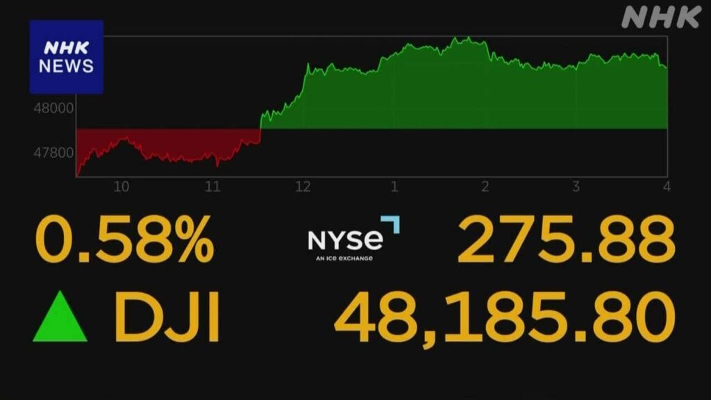 NYダウ 4万8000ドル台を回復 停戦維持への期待感から