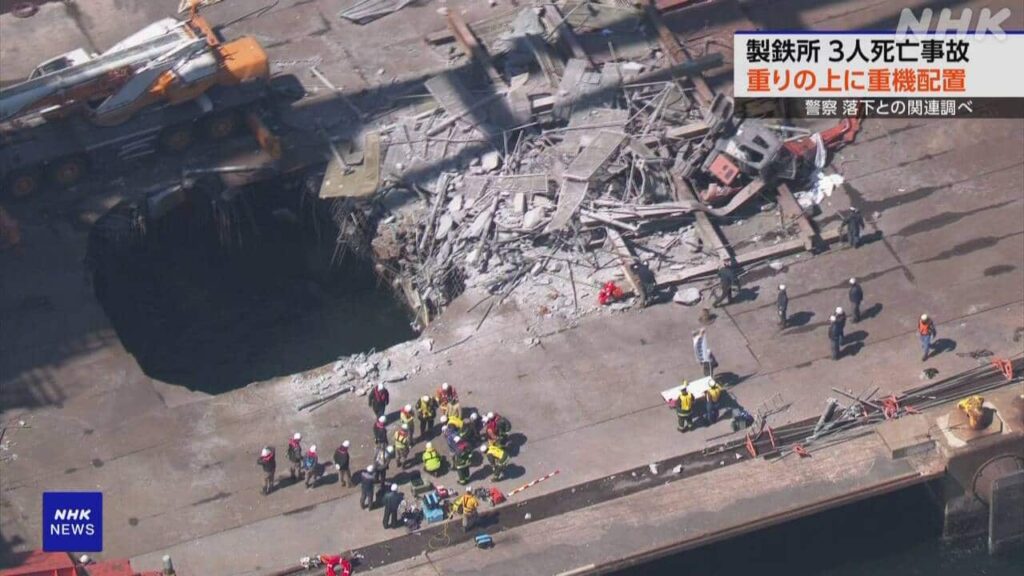 川崎 製鉄所の作業員転落事故 直前に重りの上に重機配置か