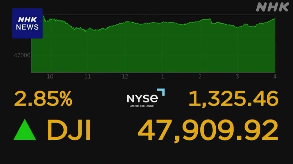 NYダウ 前日比1300ドル超の大幅値上がり 2週間の停戦合意受け