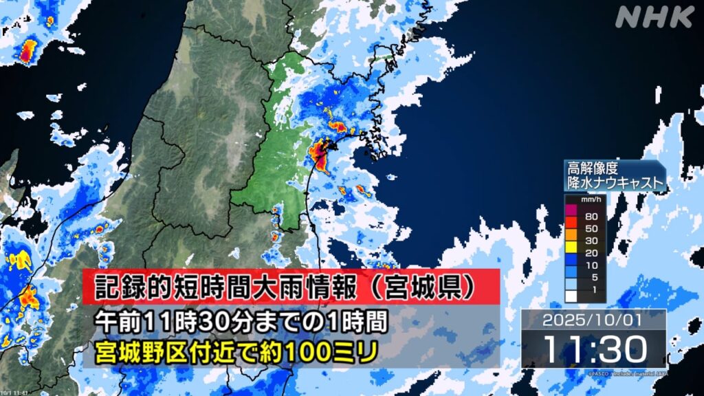 仙台 宮城野区付近に記録的な大雨 災害の危険迫る