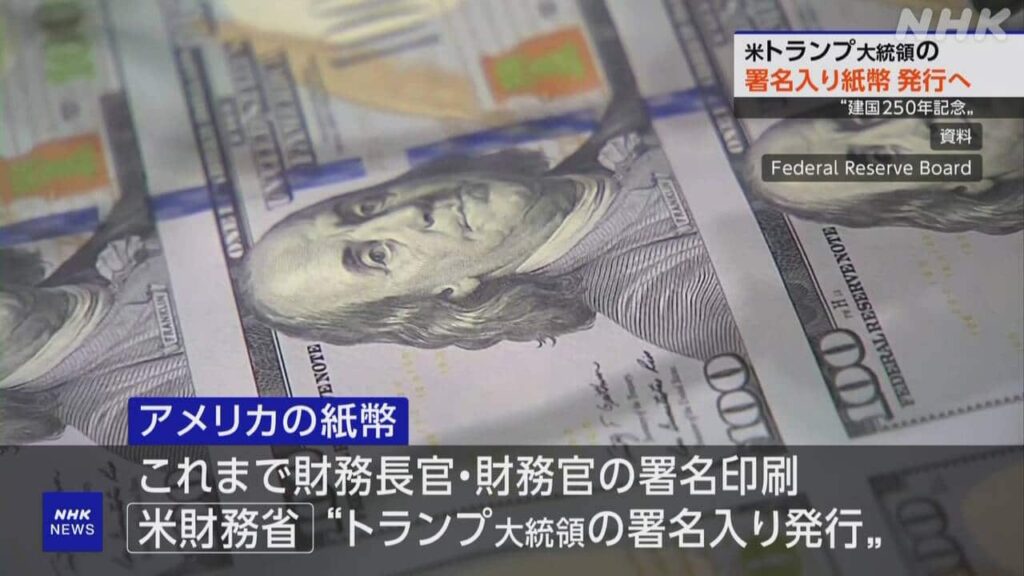 米財務省 トランプ大統領署名入り紙幣発行へ“建国250年記念”