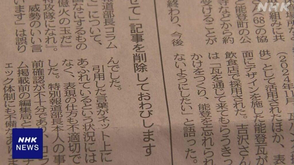 東京新聞 特別報道部長のコラム削除 「X」投稿の不適切な引用