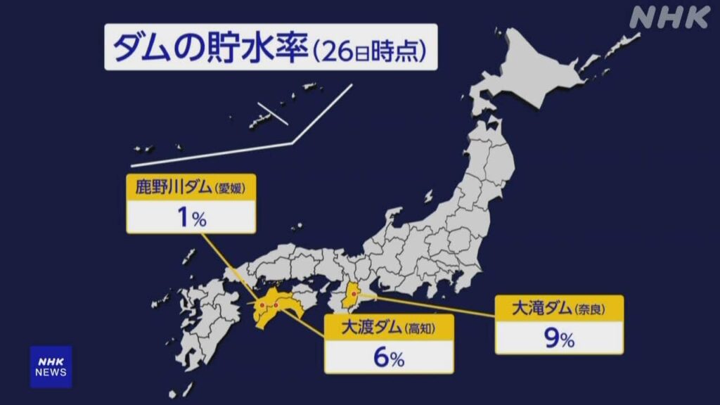 雨少なく各地のダム貯水率低下 取水制限行われている河川も