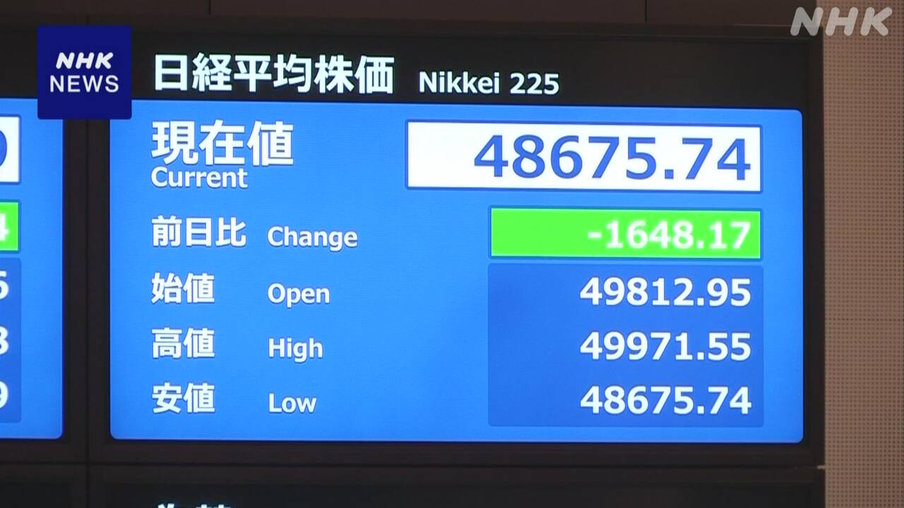 18日の東京株式市場、午後に入ってからも売り注文が膨らみ、日経平均株価は、一時、1600円以上値下がりしています。