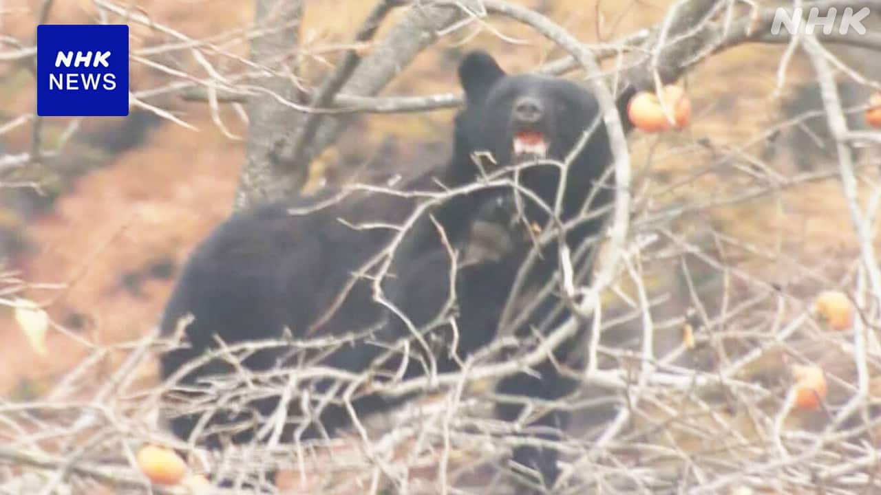 クマ2頭が柿の木に登る ライフル銃で駆除は見送り 岩手 岩泉町