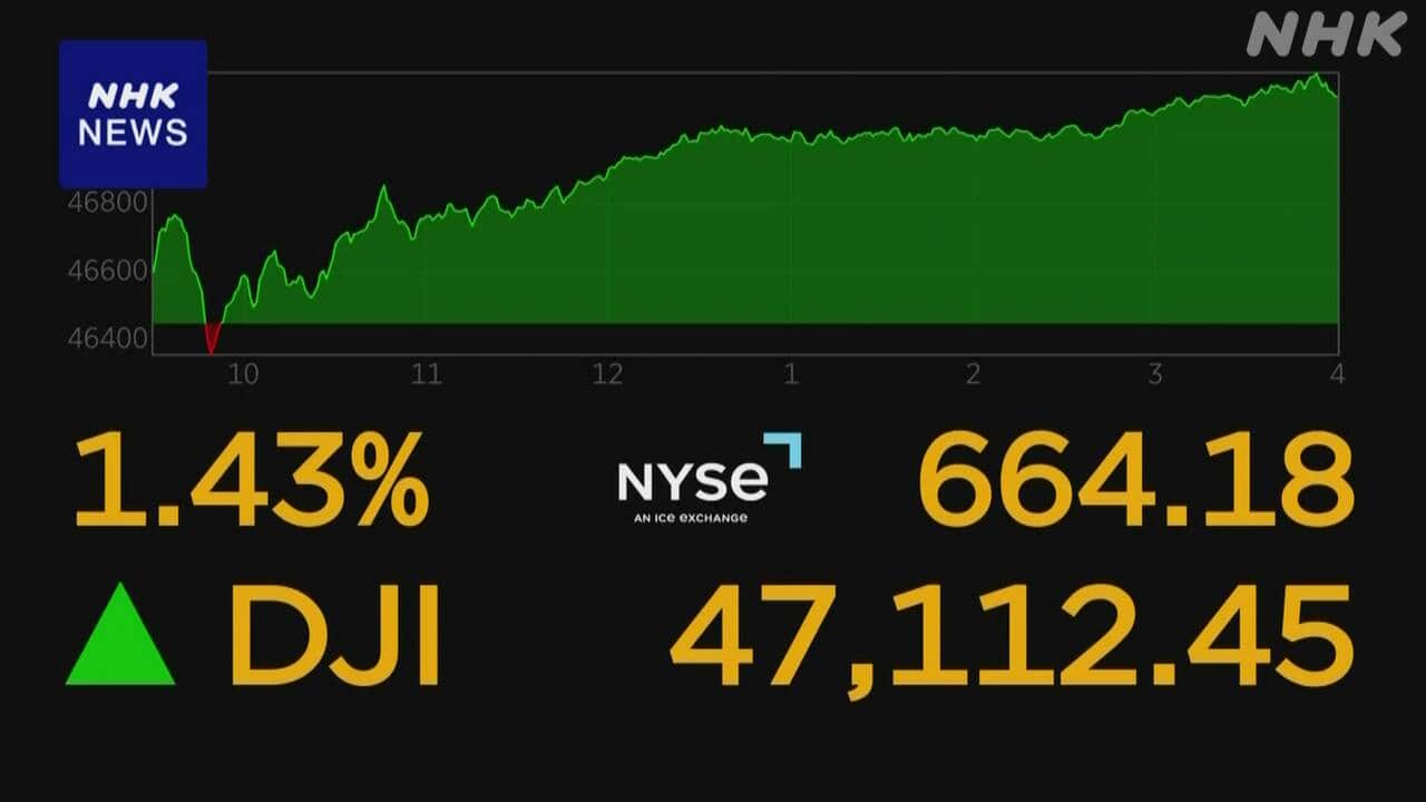 NYダウ 600ドル以上値上がり FRBが利下げに踏み切るとの観測で