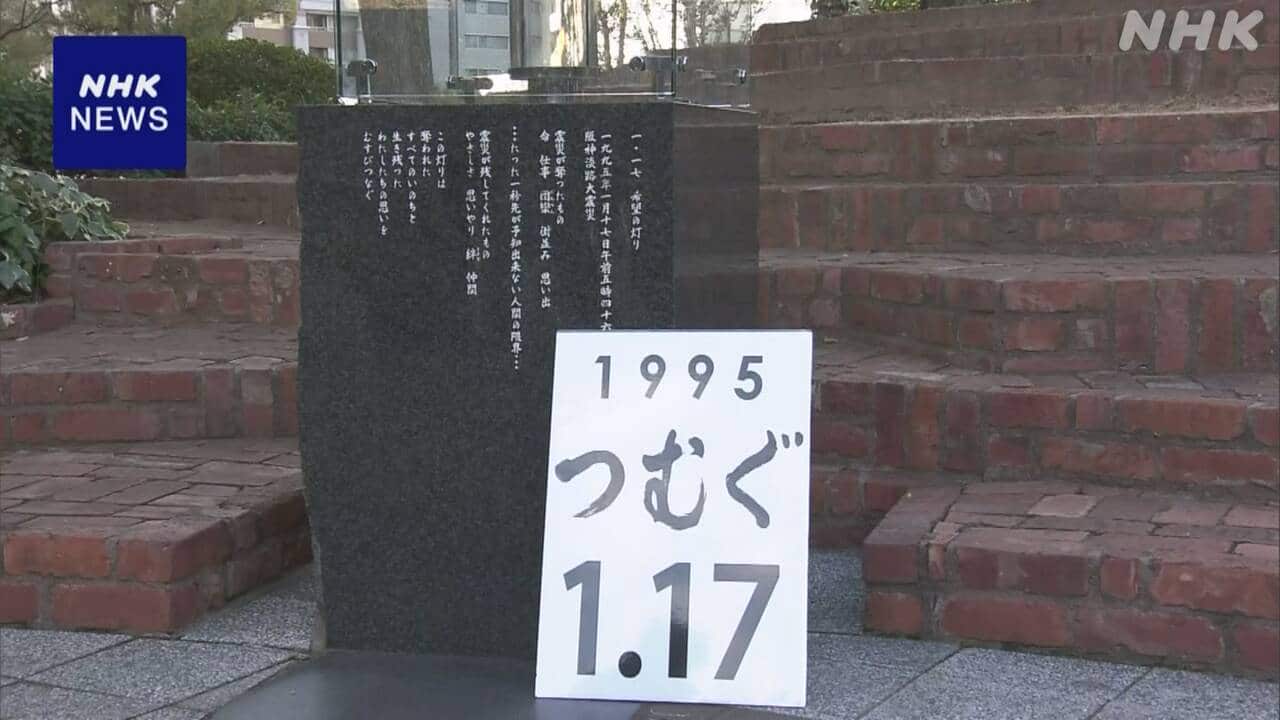 阪神・淡路大震災から31年 追悼のつどい 灯籠文字は「つむぐ」