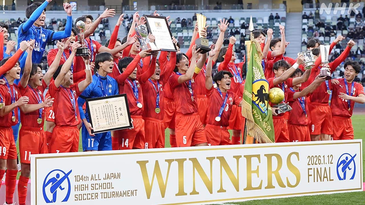 全国高校サッカー選手権は12日、決勝が行われ、鹿児島の神村学園が茨城の鹿島学園に3対0で勝って、初優勝を果たしました。