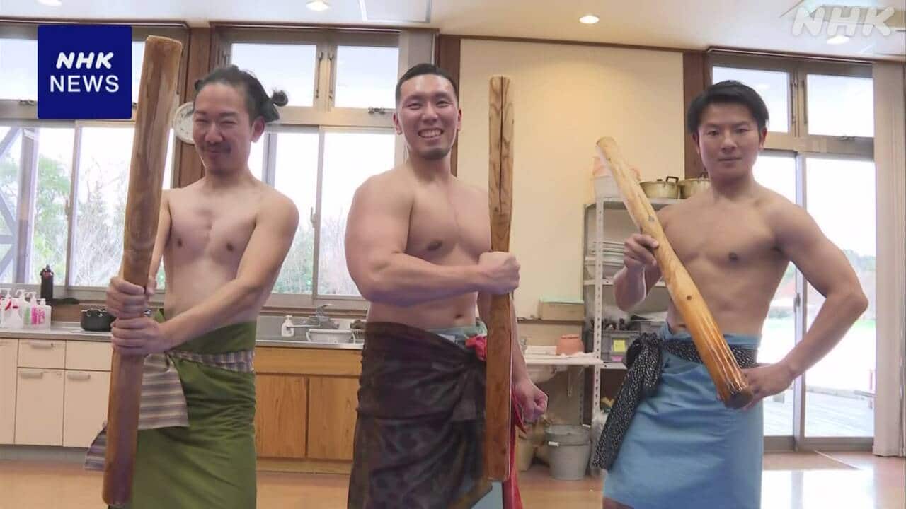 鳥取県西部にある「妻木晩田遺跡」で、その名にちなんで“ムキムキ”な筋肉自慢の男性たちが餅つきを行う、ユニークな新春イベントが行われました。