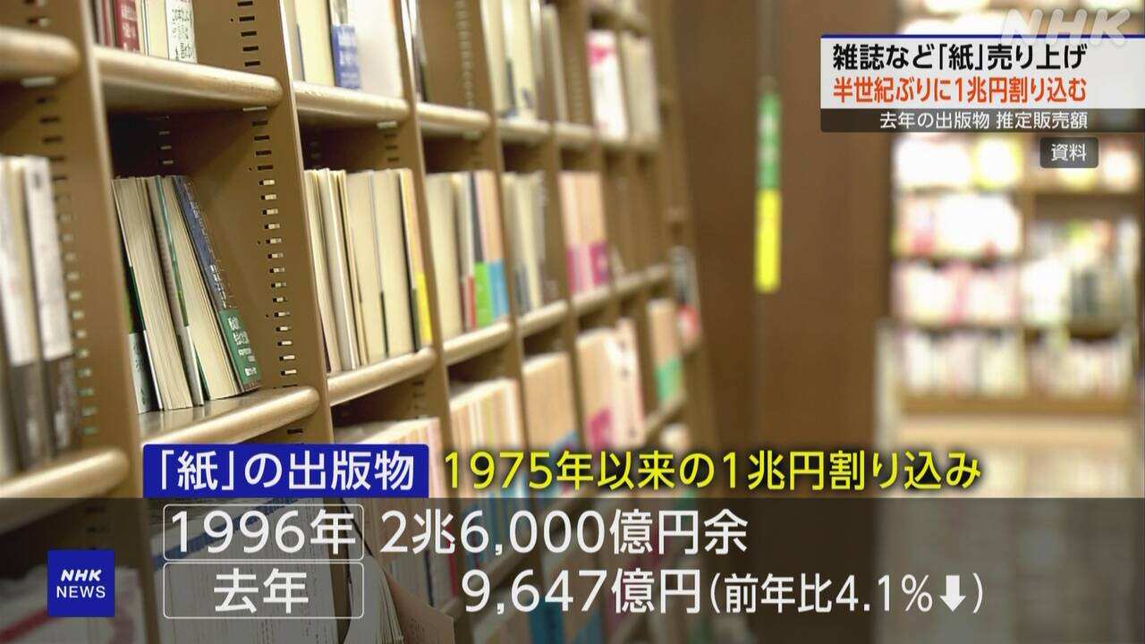 去年の雑誌など「紙」の売り上げ 半世紀ぶりに1兆円割る