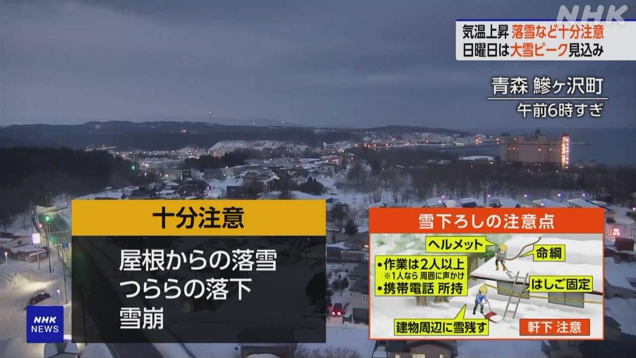 積雪多い地域で気温上昇 3月並みの予想 落雪など十分注意