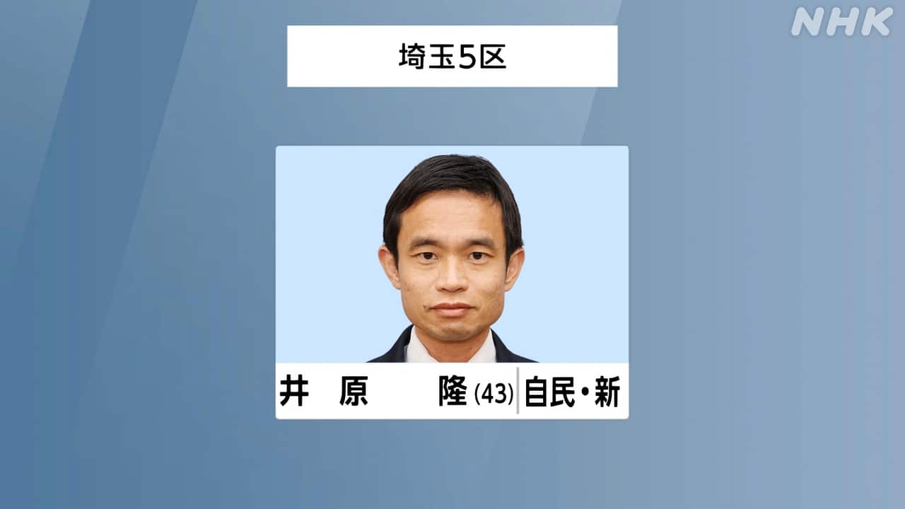埼玉5区は、自民党の新人、井原隆氏が当選しました。