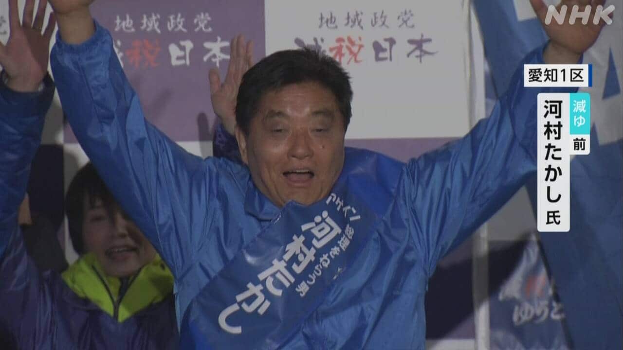 愛知1区は、減税日本・ゆうこく連合の前議員で、前の名古屋市長の河村たかし氏が7回目の当選を果たしました。