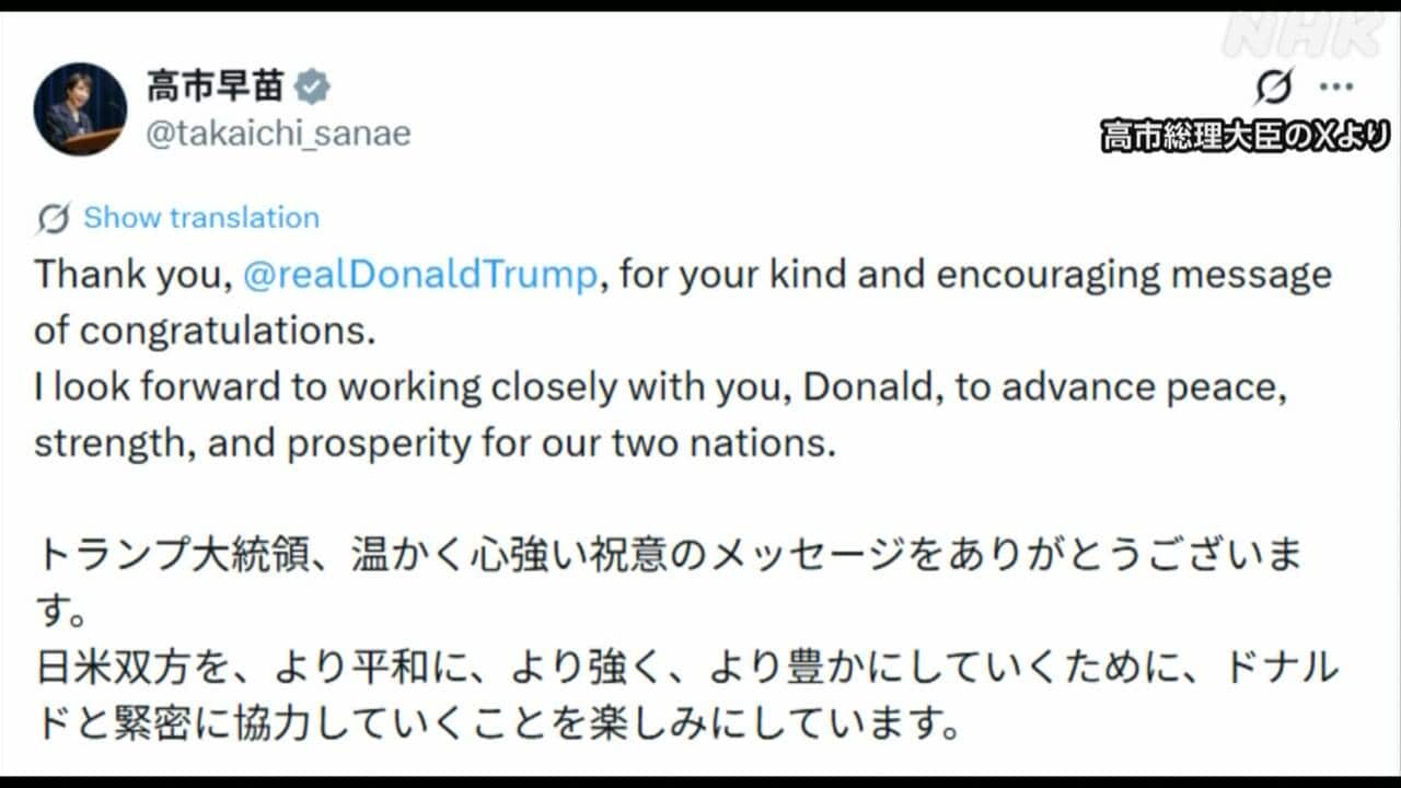 高市総理大臣は、各国首脳から旧ツイッターの「X」に寄せられた衆議院選挙で勝利したことに対する祝意に相次いで返礼の投稿をしました。