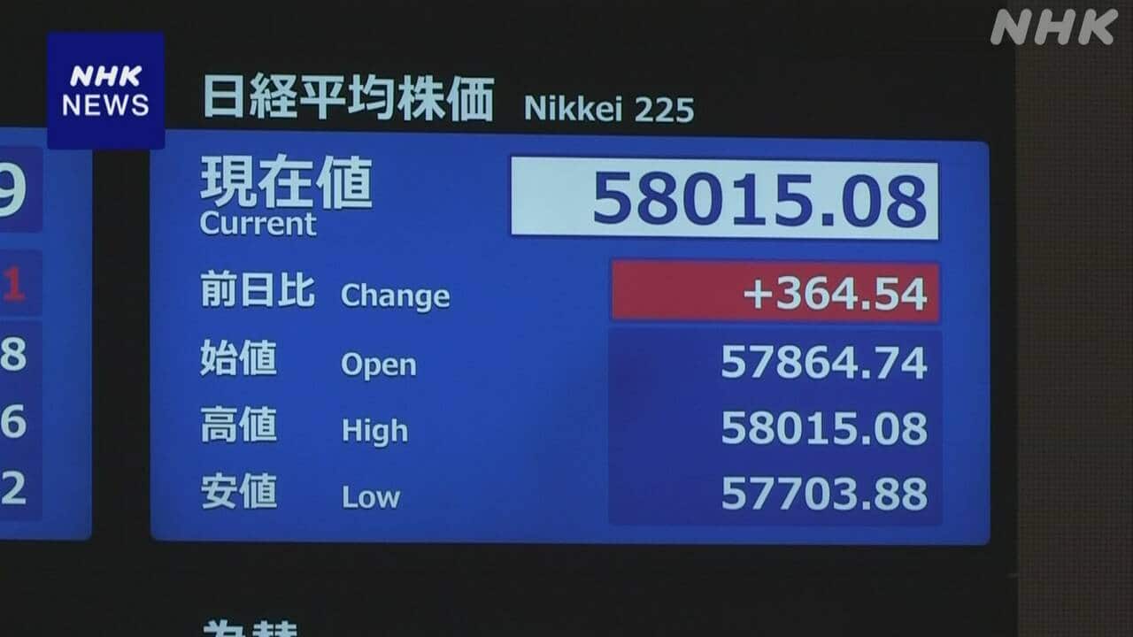 株価 一時5万8000円台に乗せるも値下がり