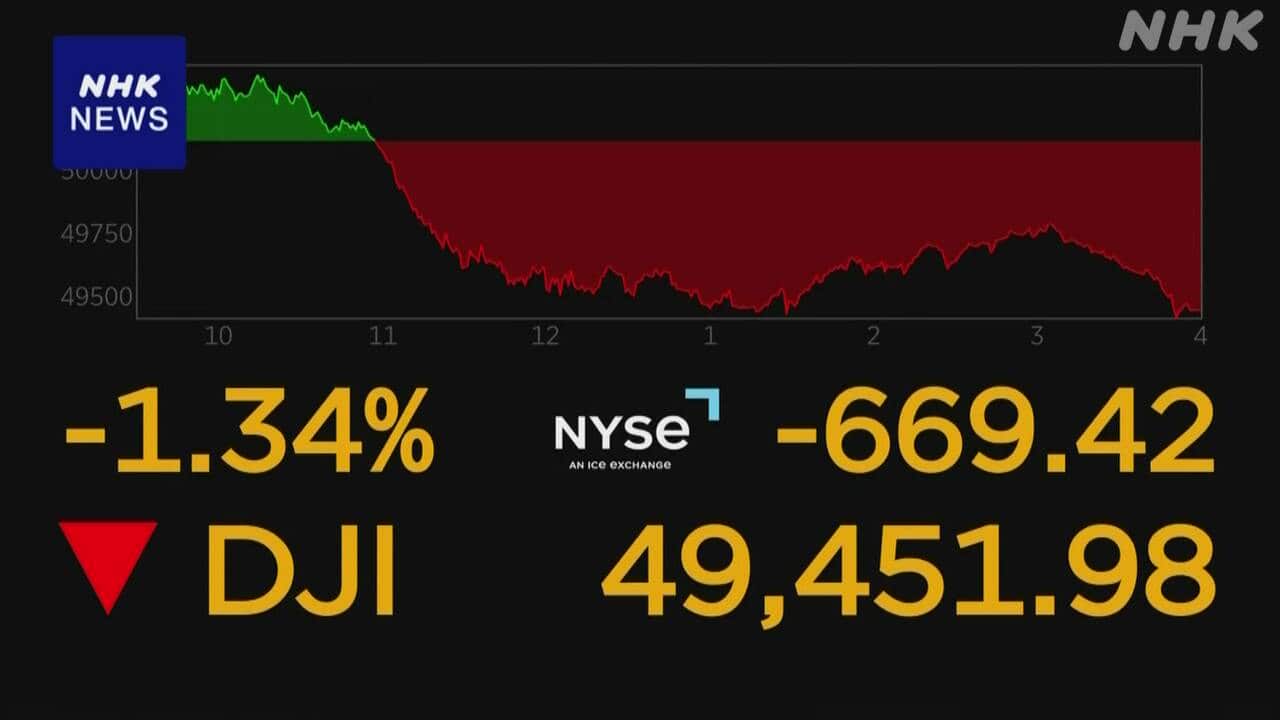 NYダウ 600ドル超値下がり AIの“負の側面”に警戒感で