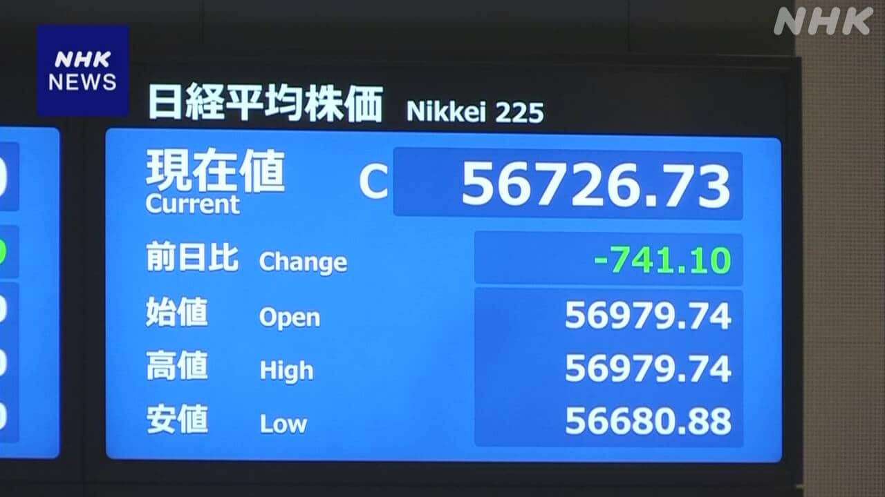 20日の東京株式市場、イラン情勢をめぐる地政学リスクの高まりから積極的な投資を控えようという動きが出て、日経平均株価は値下がりしています。