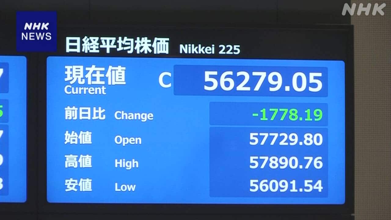 3日の東京株式市場、イラン情勢を受けて原油価格の上昇や戦闘の長期化などへの懸念から売り注文が膨らみ、日経平均株価は一時、1900円を超える値下がりとなりました。