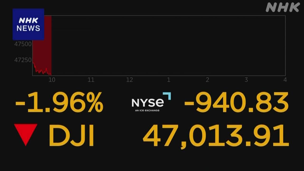 6日のニューヨーク株式市場では取り引き開始直後から売り注文が広がり、ダウ平均株価は一時、前日の終値と比べて900ドルを超える大幅な値下がりとなりました。