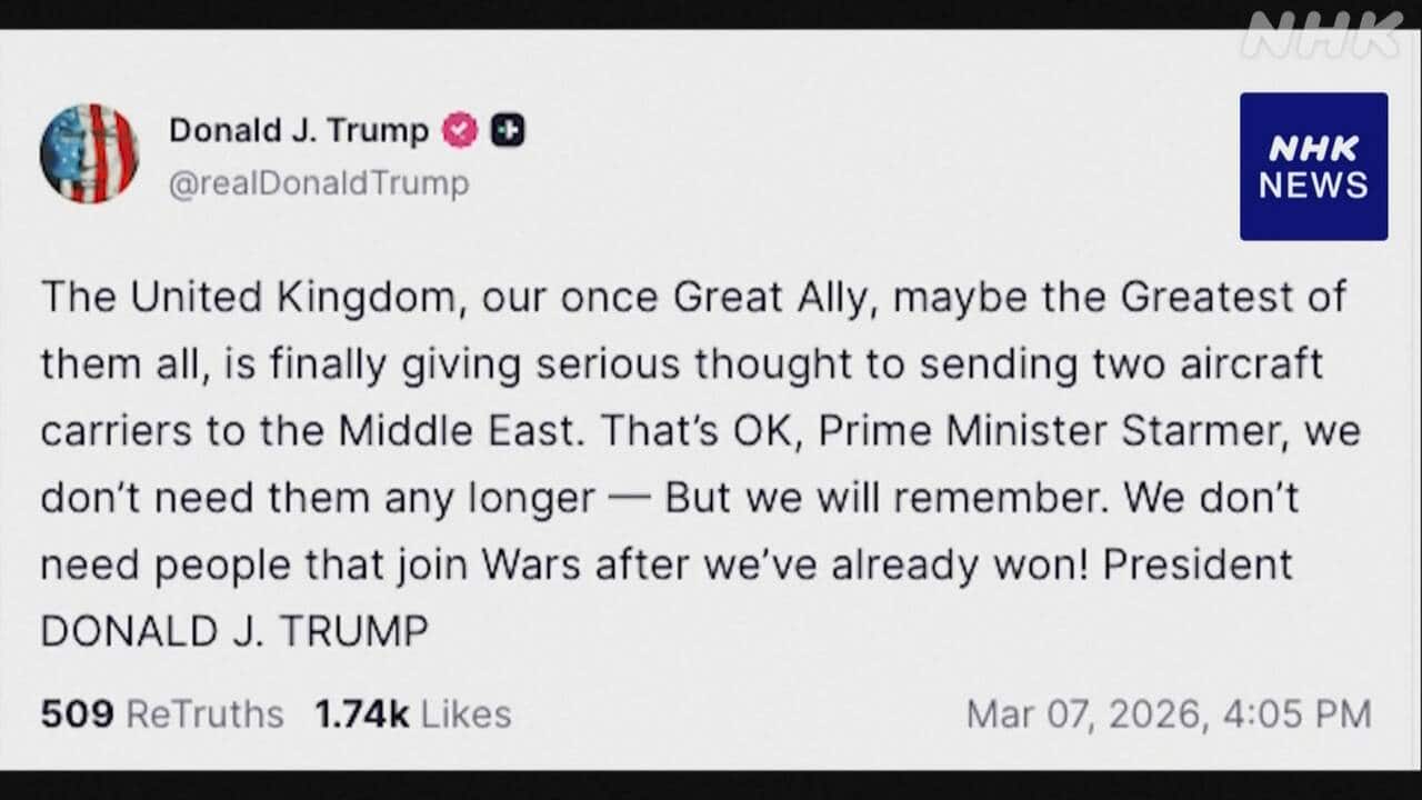 トランプ大統領 イギリスの中東への空母派遣“もう必要ない”