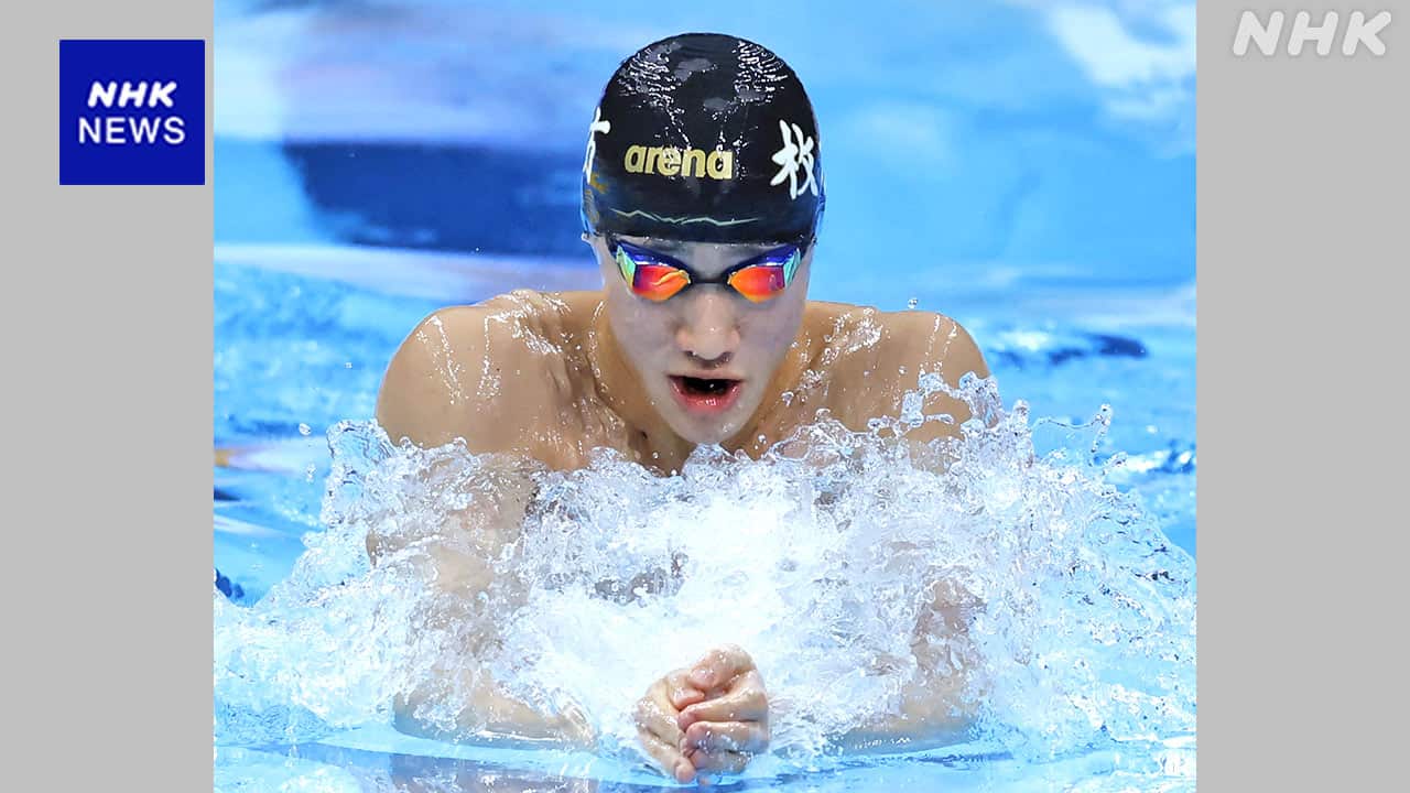 競泳の日本選手権の男子200メートル平泳ぎで高校2年生の大橋信選手が2分6秒59で初優勝し、50メートルと100メートルに続き、今大会、3冠を達成しました。