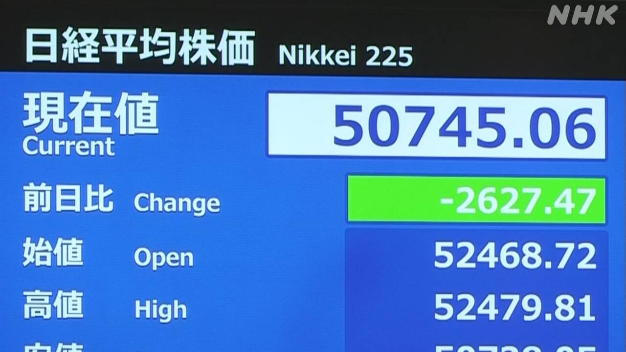 株価 一時2600円超値下がり 原油供給めぐる混乱長引く懸念で