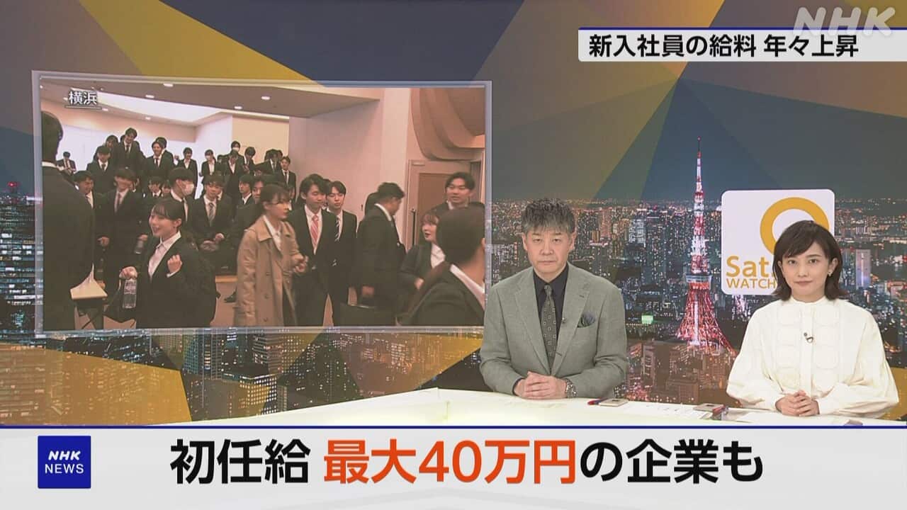 新年度を迎え今週、多くの企業が入社式を行いました。その主役の新入社員の給料は人手不足などを背景に年々上昇。初任給を最大で月40万円に引き上げた企業もあります。