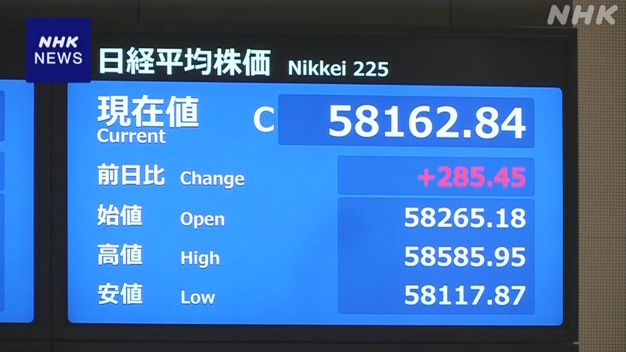 株価 5万8000円台回復 イラン協議再開の見方で買い注文集まる