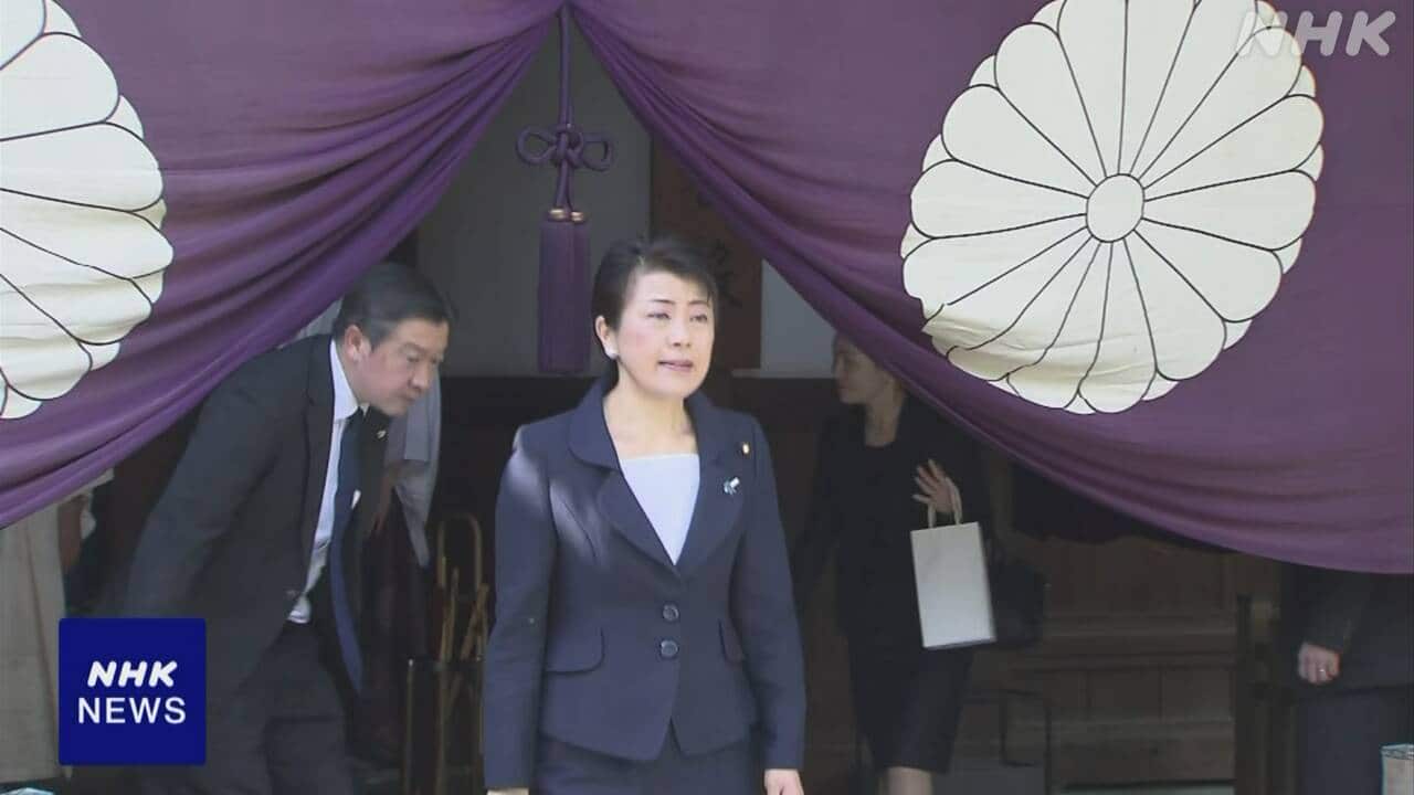 自民党の有村総務会長は22日朝、春の例大祭が行われている靖国神社に参拝しました。有村氏は、高市総理大臣の代わりに自民党総裁としての玉串料を納めたことを明らかにしました。