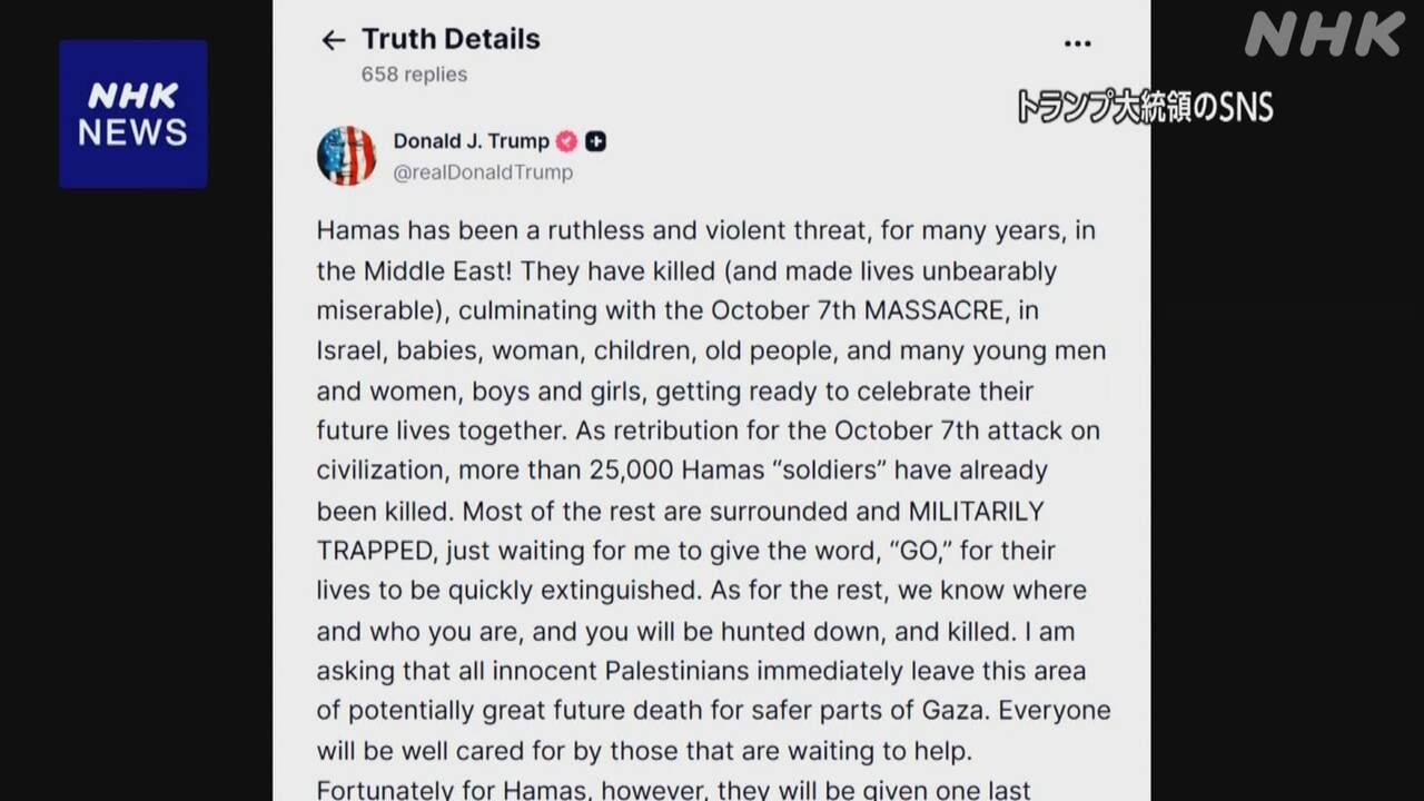 トランプ大統領 ハマスに6日午前7時までの合意迫る