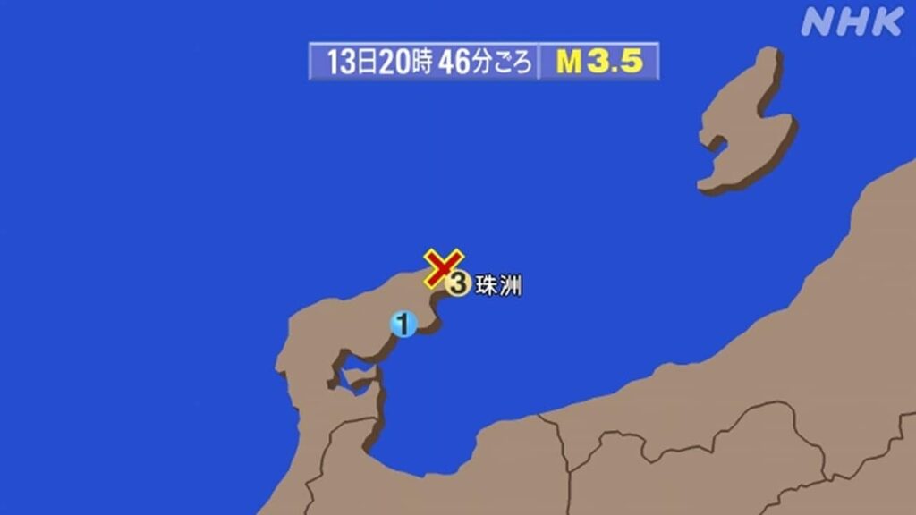 13日午後8時46分ごろ、石川県で震度3の揺れを観測する地震がありまし... -