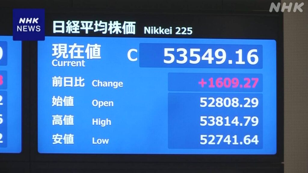 株価 終値 最高値更新 5万3000円超え 近く衆院解散の見方受け