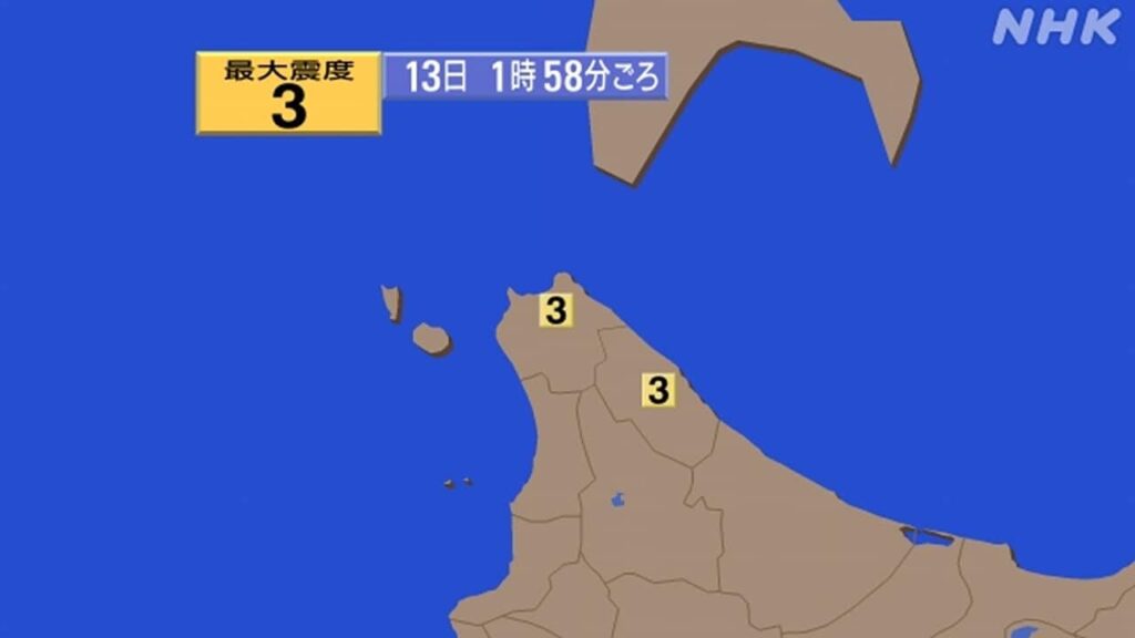 13日午前1時58分ごろ、北海道で震度3の揺れを観測する地震がありまし... -