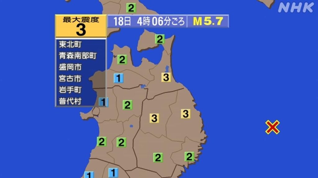 【地震速報】青森県や岩手県で震度3 津波の心配なし