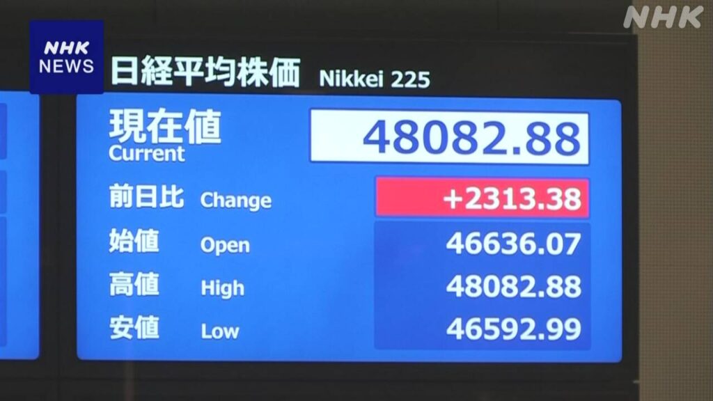 株価 一時初の4万8000円台 終値も最高値 大幅更新