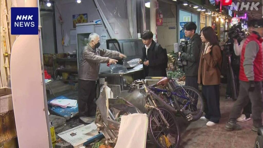 韓国 ソウル近郊 市場にトラックが突っ込む 2人死亡 18人けが