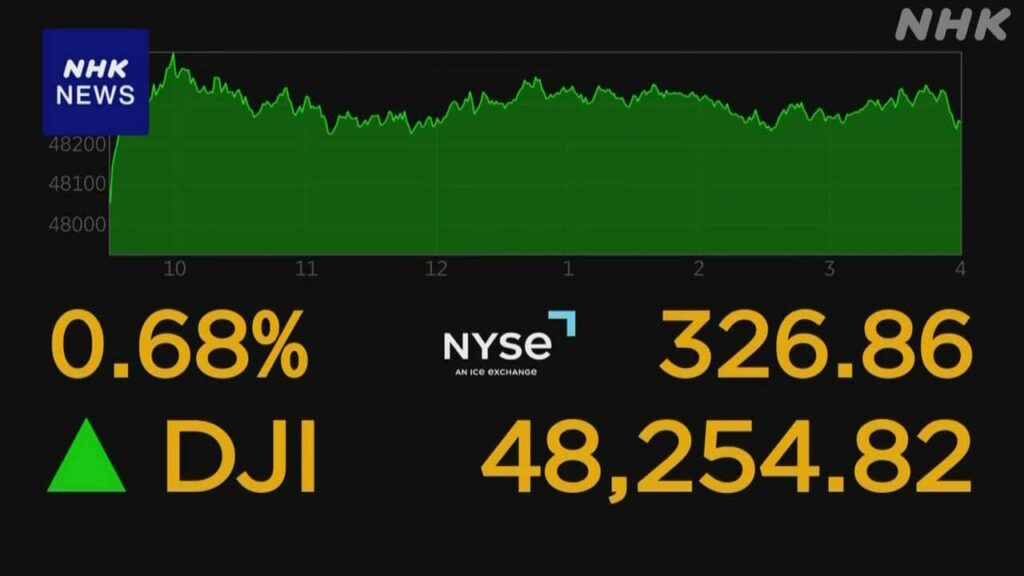 NYダウ値上がり 終値として初の4万8000ドル超に