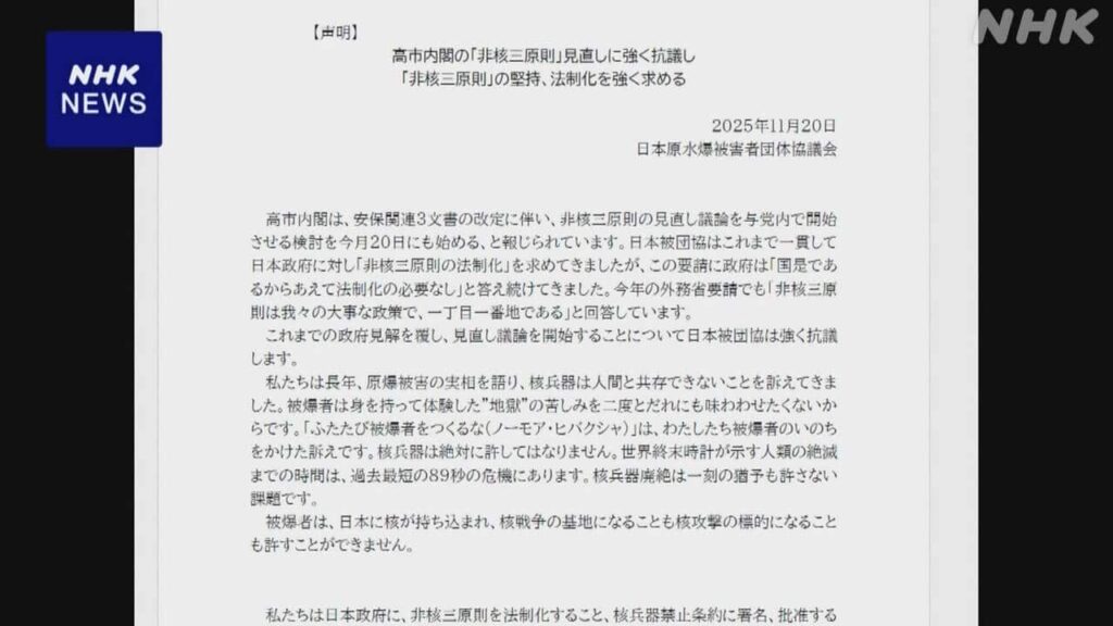非核三原則をめぐる高市総理大臣の発言に関連して、日本被団協{... -